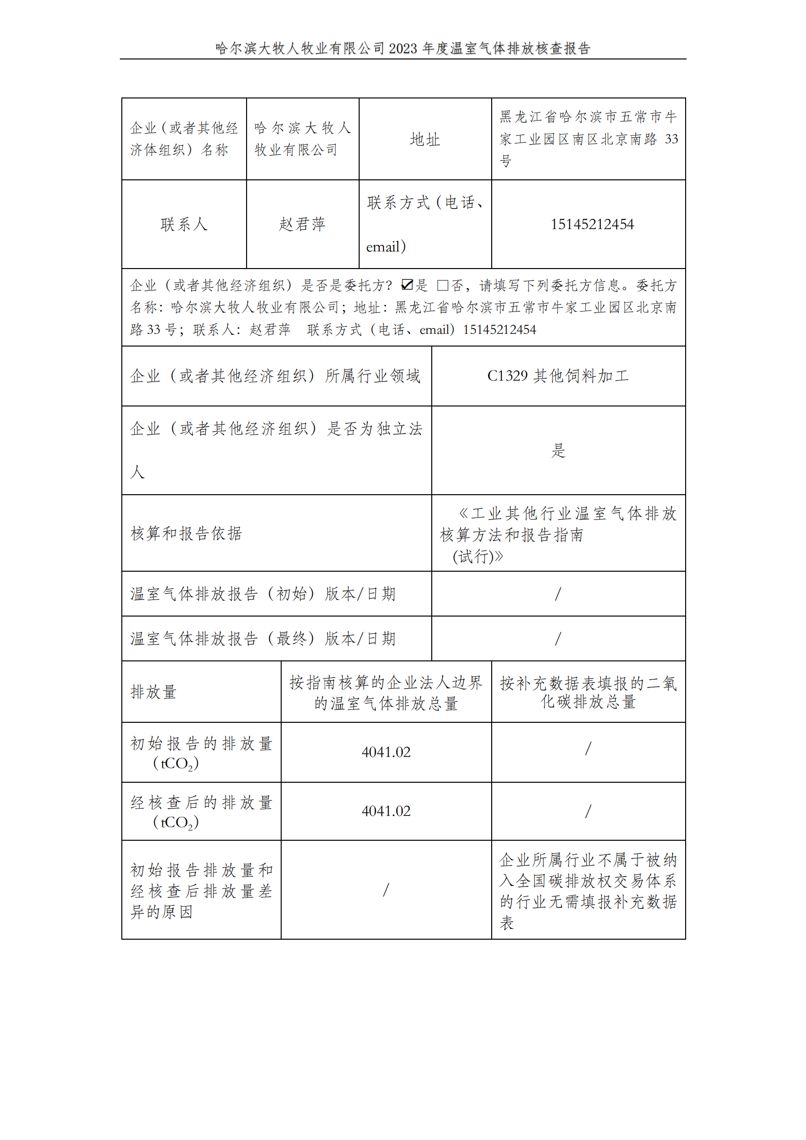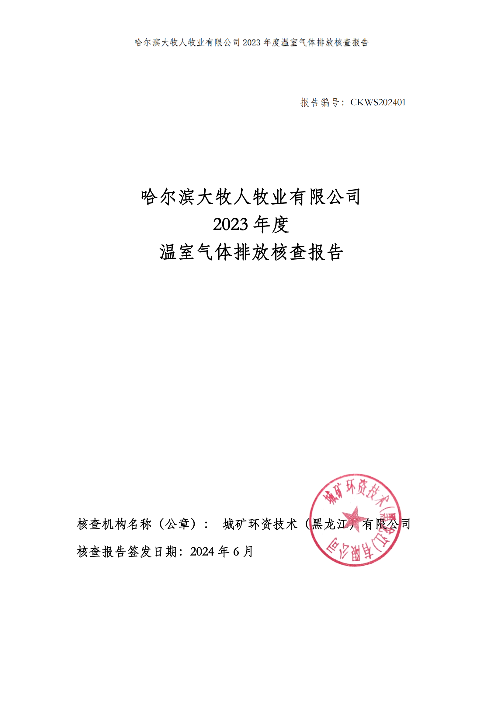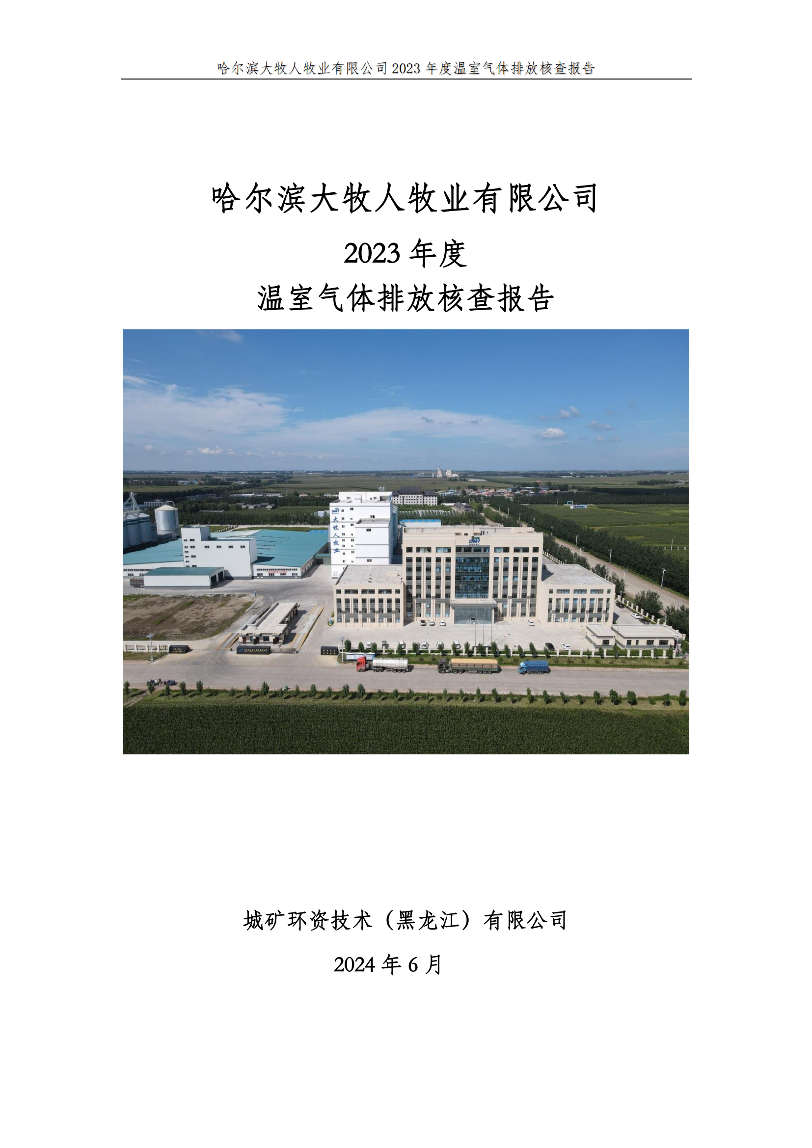 哈爾濱大牧人牧業(yè)有限公司2023年度溫室氣體排放核查報告